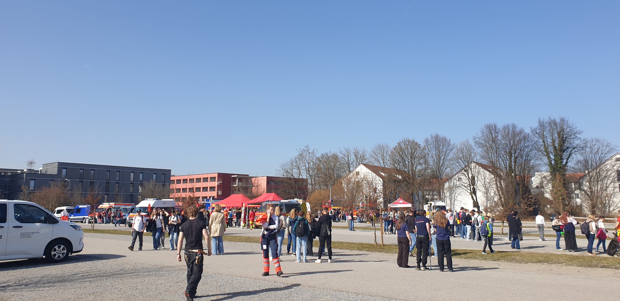 Auch während der Mittagspause hatten wir die Möglichkeit, mit den Referenten ins Gespräch zu kommen und mehr über die Aufgabenfelder von Blaulichtorganisationen wie der DLRG, dem Roten Kreuz oder der Feuerwehr zu erfahren. Zusätzlich waren verschiedene Einsatzfahrzeuge ausgestellt, sodass wir einen direkten Einblick in deren Arbeitsbereiche gewinnen konnten.