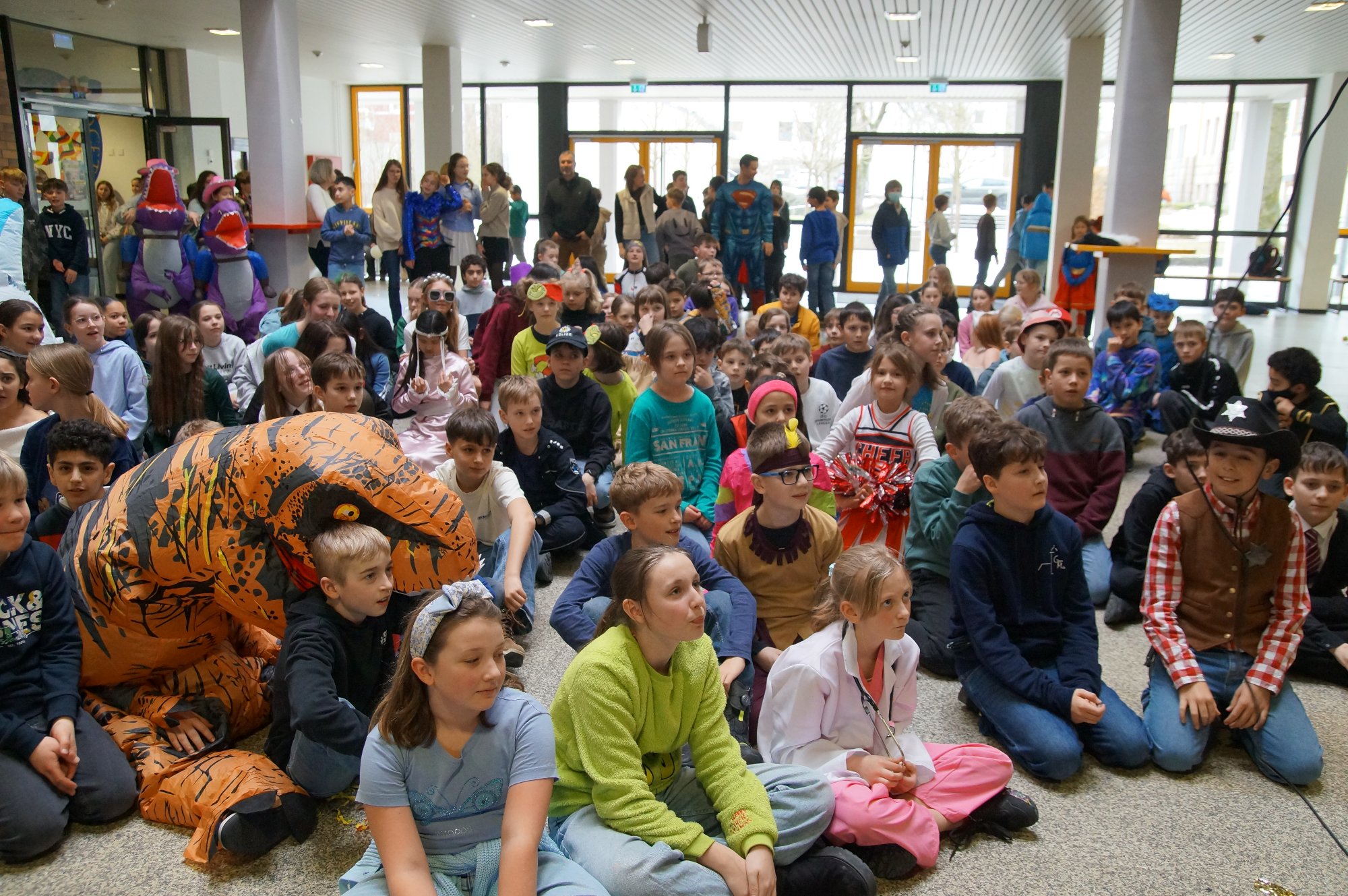 Kurz vor den Faschingsferien verwandelte sich der Lichthof unserer Schule in eine bunte Partyzone! Die SMV hatte zur großen Faschingsfeier geladen und viele Schülerinnen und Schüler sowie Lehrerinnen und Lehrer kamen in kreativen Kostümen – von Superhelden über Dinosaurier bis hin zu fantasievollen Fabelwesen war alles dabei.