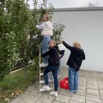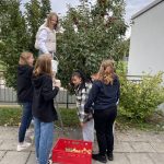 Die Schülerinnen und Schüler der Klasse 10c haben in der vergangenen Woche zusammen mit ihren Lehrerinnen Frau Hergesell und Frau Göbel die reiche Ernte von den Bäumen vor der Kantine abgenommen und die Äpfel anschließend in der Pause verteilt. Auch das Lehrerkollegium und die Kantine bekam einen Teil der Früchte ab.