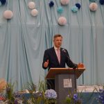Zum bestandenen Abitur gratulierten nicht nur Schuldirektor Gerd Koppitz und Oberstufenkoordinatorin Roswitha Böhne, sondern auch Landrat Dr. Oliver Bär, Münchbergs Bürgermeister Christian Zuber und die Vorsitzende des Elternbeirats Susanne Schaller.