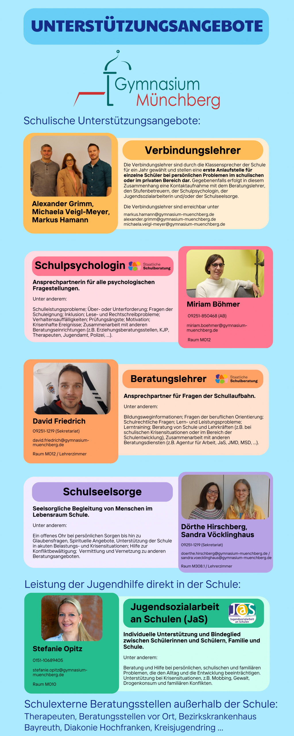 Kontakt zur Berufsberatung: In jedem Monat Sprechzeiten im Gymnasium Münchberg